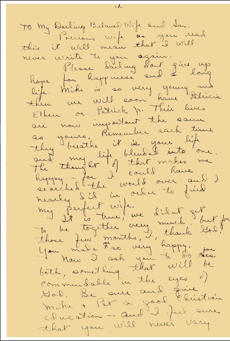 When my mom received that final telegram in August 1942, she was pregnant. My sister, Patricia (named after our father Patrick), was born a few months later.